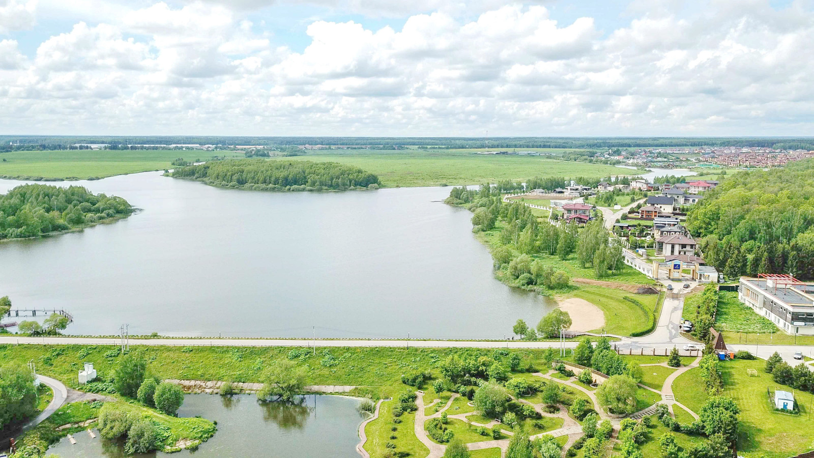 Дома в поселке все красивые и высокого уровня, настоящего бизнес-класса. Есть кирпичные и деревянные дома, с мебелью или под ключ, с видом на озеро или у леса, или без деревьев.